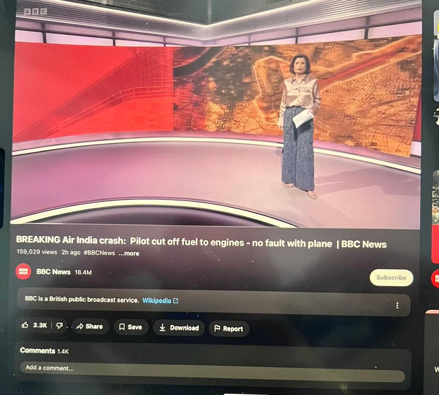 Furthermore, the BBC claimed in its news broadcast about the preliminary findings of the investigation that the investigation found no major fault in the plane. The headline of the report read, “Air India crash: Pilot turned off engine fuel – no fault in plane.” This headline implies that there was no fault in the plane that could have caused the crash. Instead, the investigation report says that it was the pilot’s fault who cut off the fuel which led to the crash.