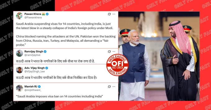 A viral social media post is circulating online claiming that Saudi Arabia has banned visas for Indian citizens. The post is being shared...