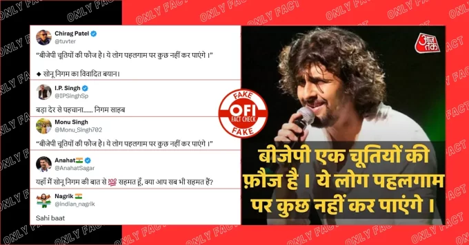 Aaj Tak postcard quoting singer Sonu Nigam is going viral on X. It claims that Nigam called the BJP “an army of fools”...