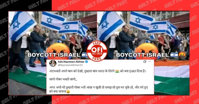 An image is going viral on social media, showing individuals carrying the Israeli flag while appearing to walk over the Indian flag, as...