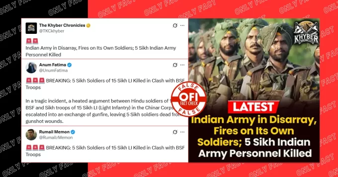 A social media post is going viral, claiming that an exchange of fire occurred between Sikh and non-Sikh Indian Army soldiers on the...
