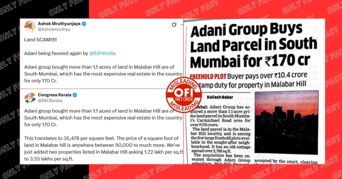 A social media post has gone viral, claiming that the Adani Group has acquired over 1.1 acres of land in Malabar Hill, South...