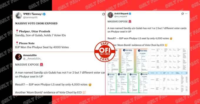 Recently, a claim has been going viral on social media alleging that a man named Sandeep, son of Gulab, has seven different voter...