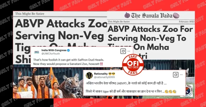 A newspaper clipping is going viral on social media, claiming that on the occasion of Mahashivratri, ABVP members attacked a zoo because tigers...