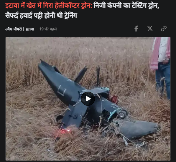 War Analysts wrote “An Indian Military Drone crashed into a wheat field in Nandpur village Saifai Etawah district of Uttar Pradesh”