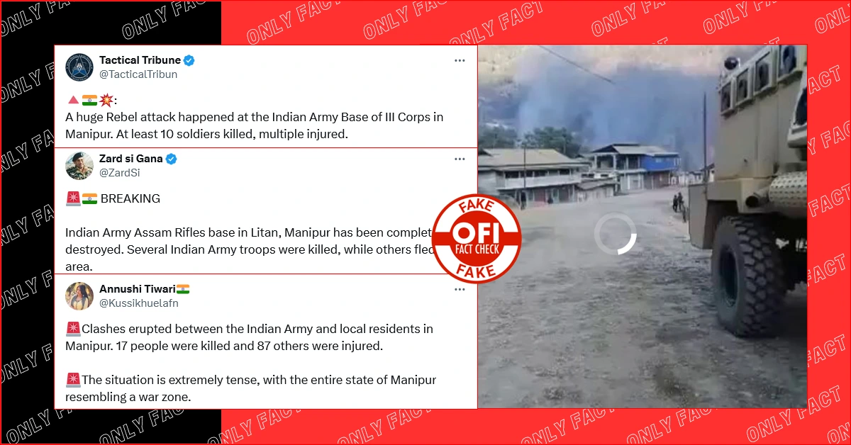 In conclusion, the posts claiming that the Indian Army base in Manipur was attacked by militants, resulting in the death of soldiers and multiple injuries, is entirely fake and baseless. There are no reports of any such incident. The visual actually shows arson in Litan Sareikhong village, where several houses and Govt quarters were damaged.