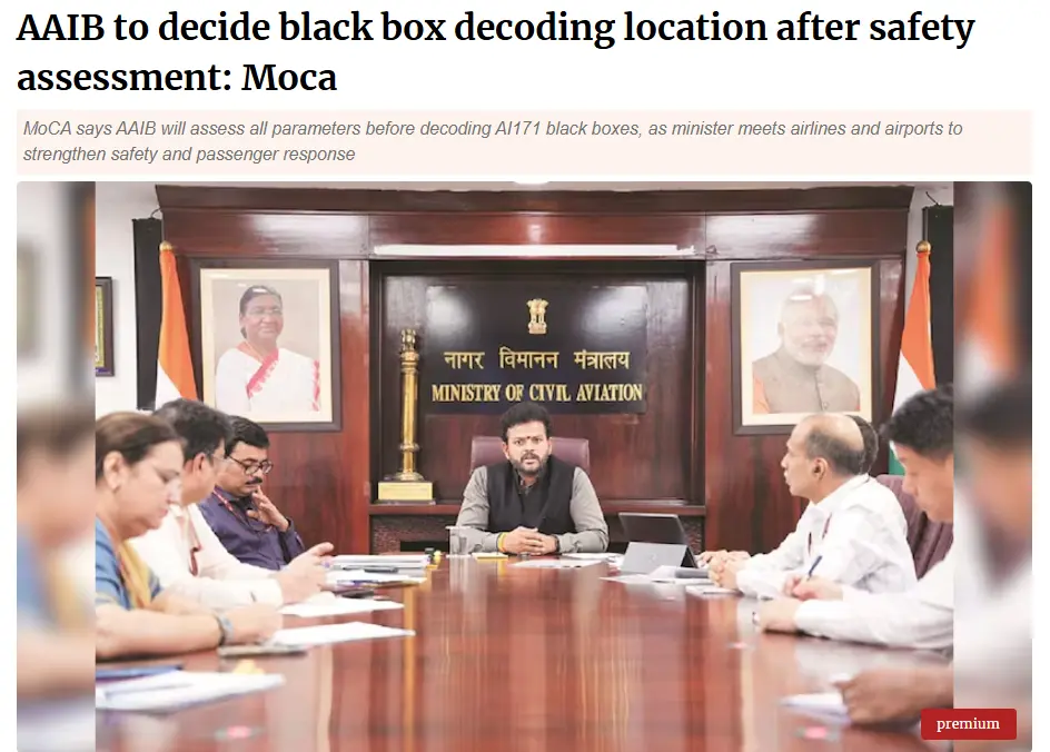 The Economic Times reported, “New lab, old problem: India’s new Rs 9 crore black box lab fails first big test, govt sends Air India crash plane black box to US.” (archived link)