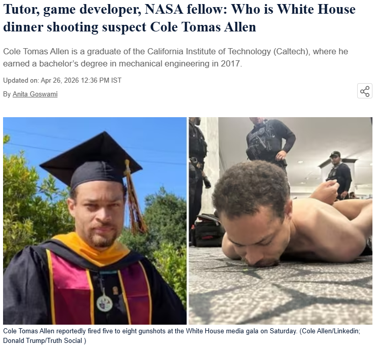 During the investigation, a keyword search led us to reports by The Washington Post and Hindustan Times. According to these reports, the person involved in the shooting during the White House Correspondents’ Dinner has been identified as 31-year-old Cole Tomas Allen, a resident of Torrance, California. Officials said that he is a tutor and software developer from the same location.
