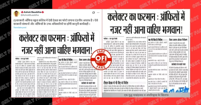 A newspaper clipping is going viral on social media with the claim that a collector has issued an order stating that deity images...