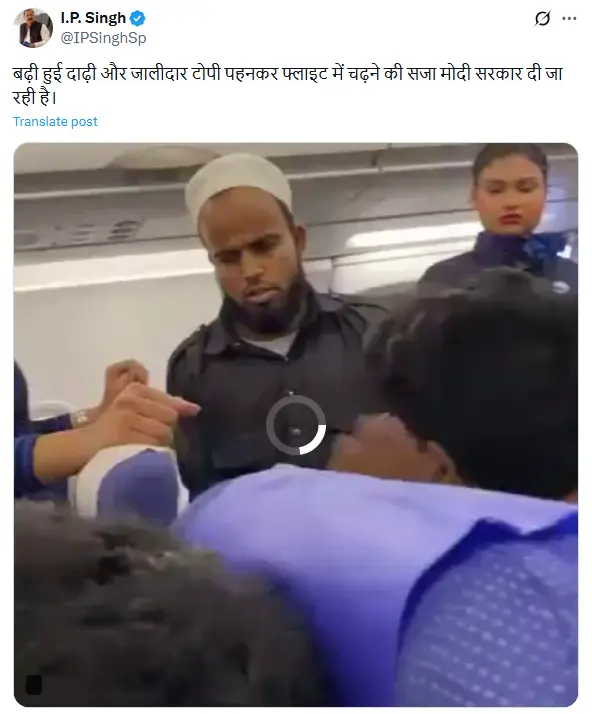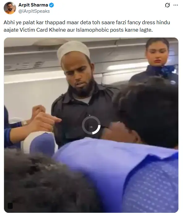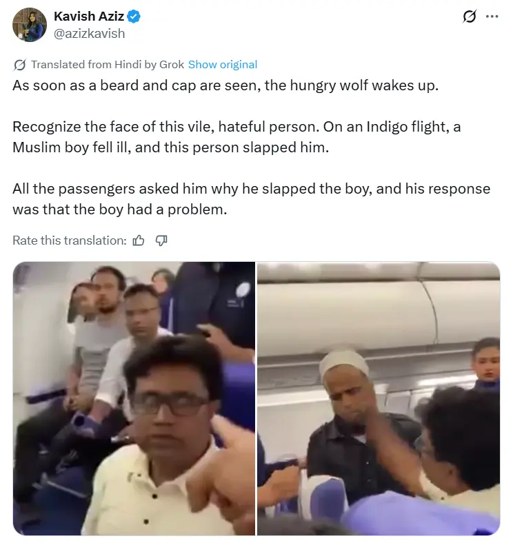Sharing the video, the handle Kavish Aziz wrote, “As soon as a beard and cap are seen, the hungry wolf wakes up. Recognize the face of this vile, hateful person. On an Indigo flight, a Muslim man fell ill, and this person slapped him. All the passengers asked him why he slapped the man, and his response was that the he had a problem.” (archived link)