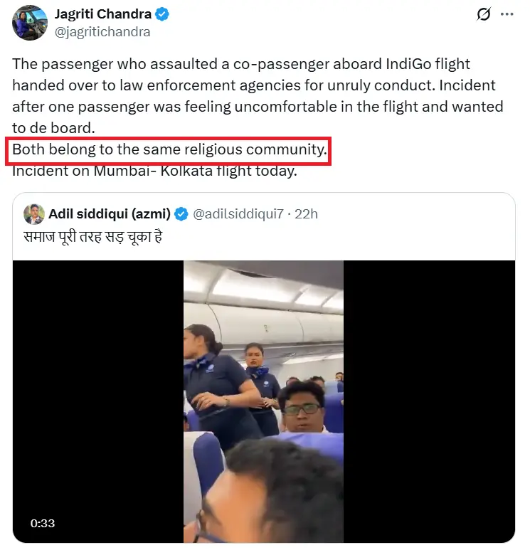 | Claim | A Hindu passenger on an Indigo flight slapped his fellow Muslim passenger because of his religion. |