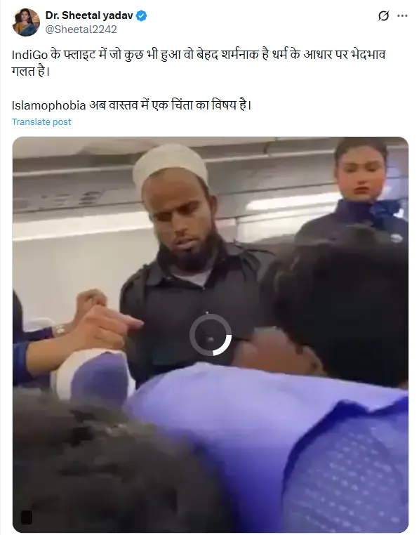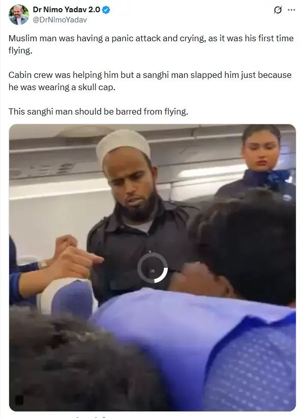Ashraf Hussain stated, “A Muslim man was assaulted on a flight. Something seems to trigger them just at the sight of a beard and cap. This is reported to be an @IndiGo6E flight. Will any action be taken against this person?” (archived link)