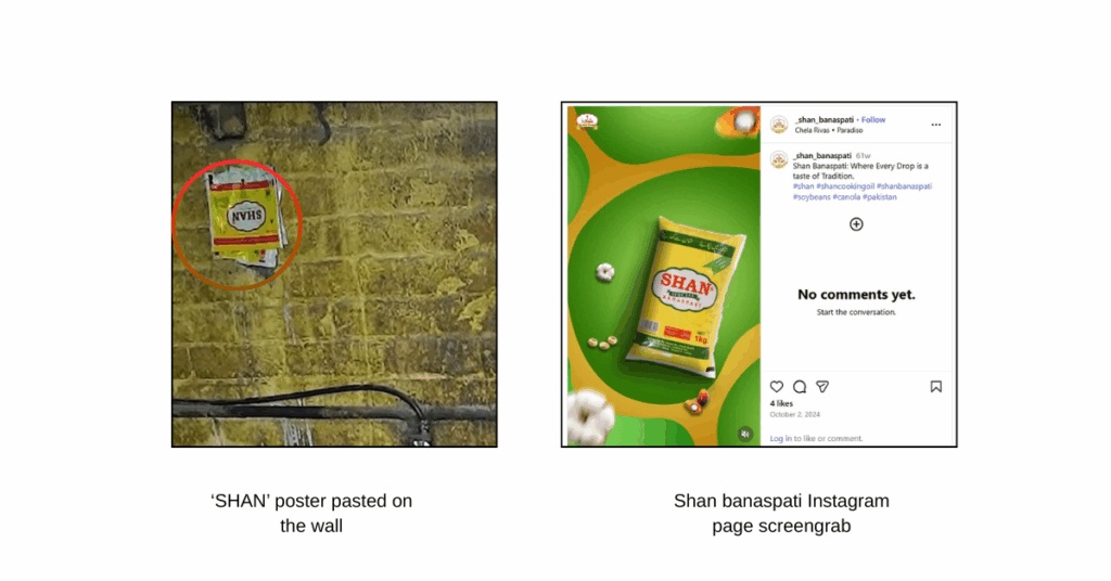 Moreover, with reverse image search of the poster, we also found an Instagram page named Shan Banaspati, where we saw some of its products with the same logo and design as seen in the video, confirming that the poster pasted on the wall in the video belongs to the Pakistan-based company.