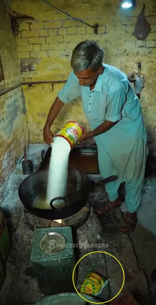 In the same frame, we also spotted a yellow container with some text inscribed in Urdu. We took a screengrab and translated it using Google Translate, which read ‘Dalda Banaspati.’