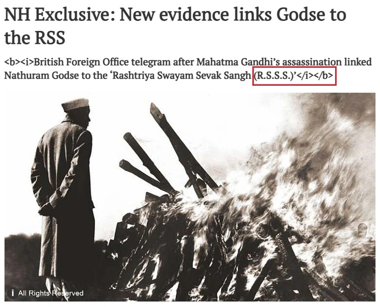 Furthermore, we found a report by National Herald which mentions about British Foreign Office telegram after Mahatma Gandhi’s assassination, which linked Nathuram Godse to the Rashtriya Swayam Sevak Sangh. Here, we found that in this telegram, the British referred to the RSS as R.S.S.S.